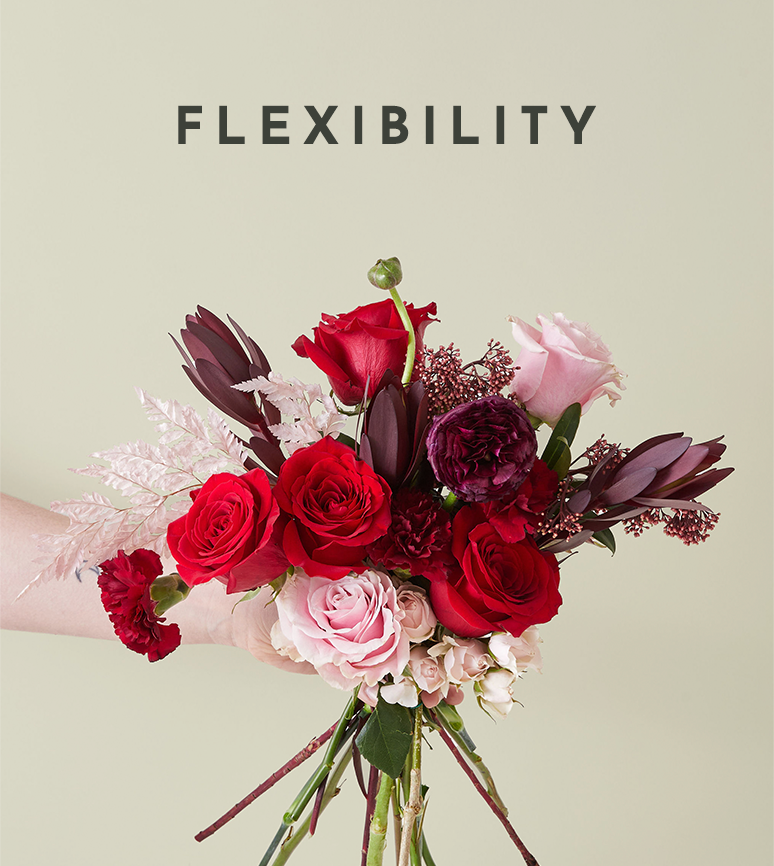 Select your preferred color palette and arrangement and choose a subscription that suits your rhythm, whether weekly, biweekly, or monthly.